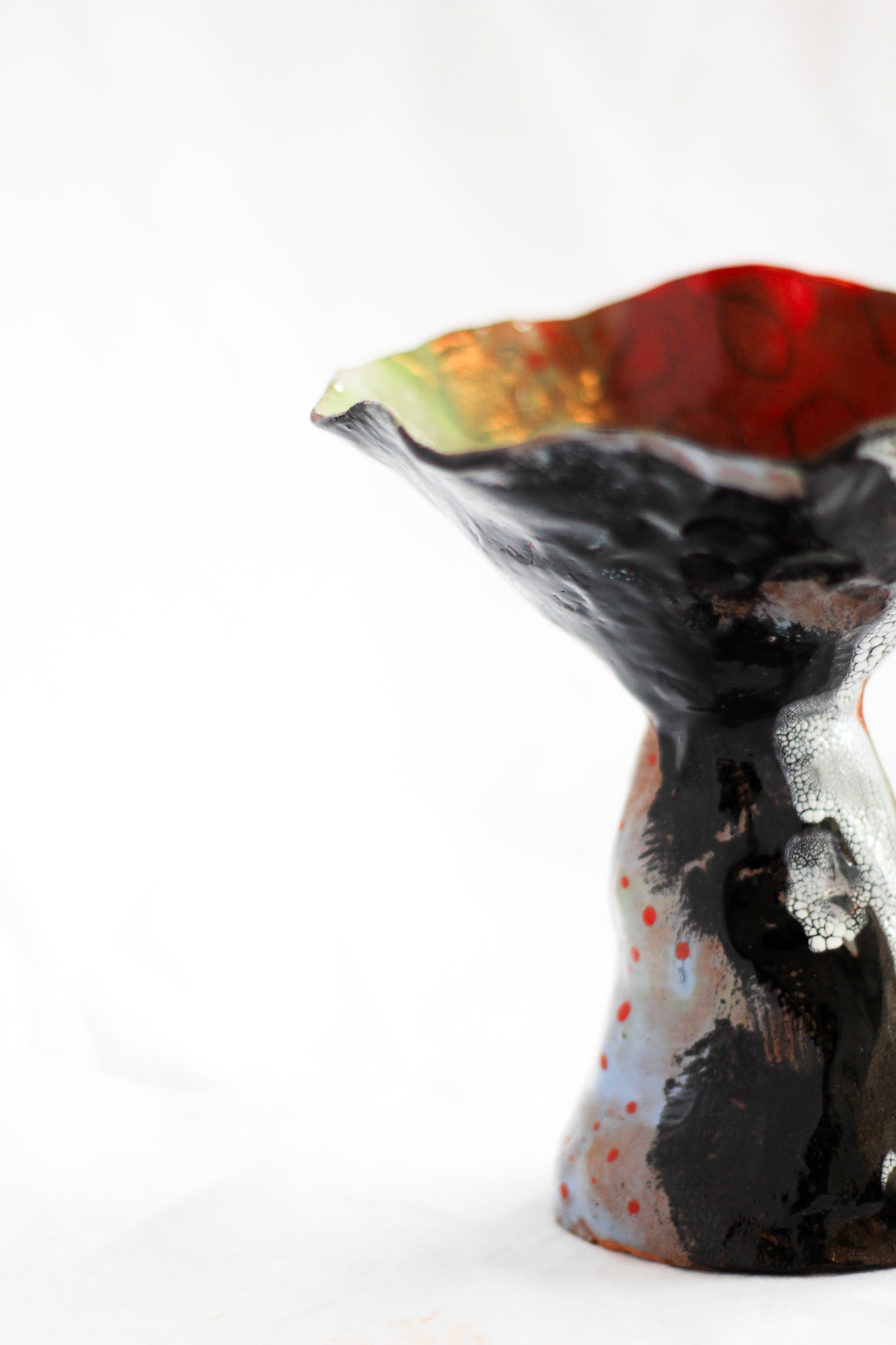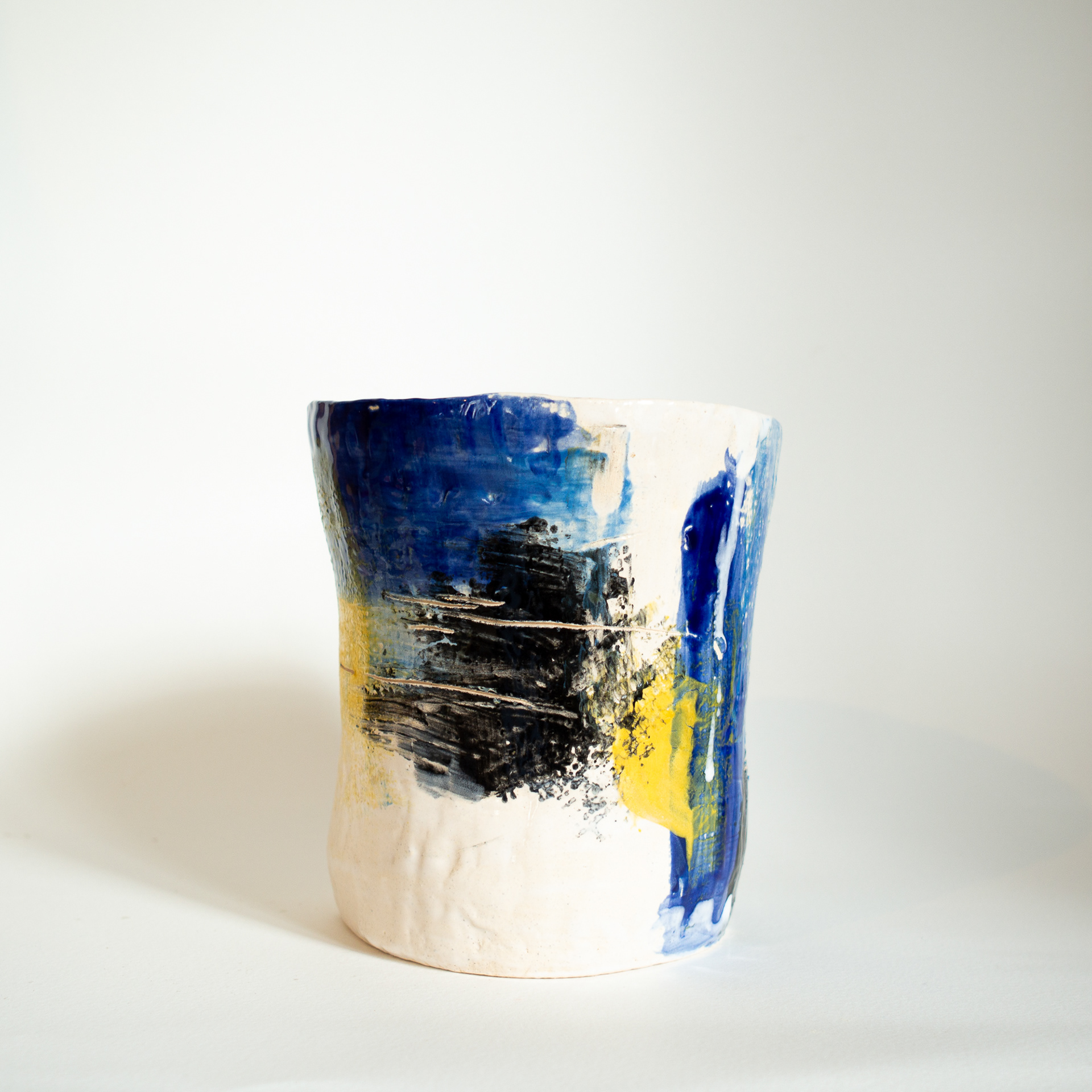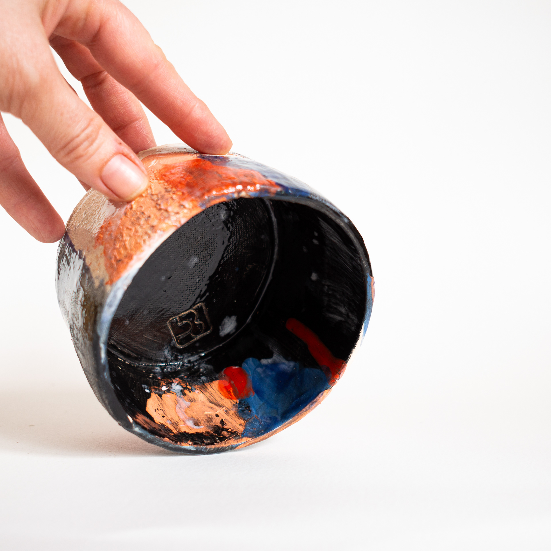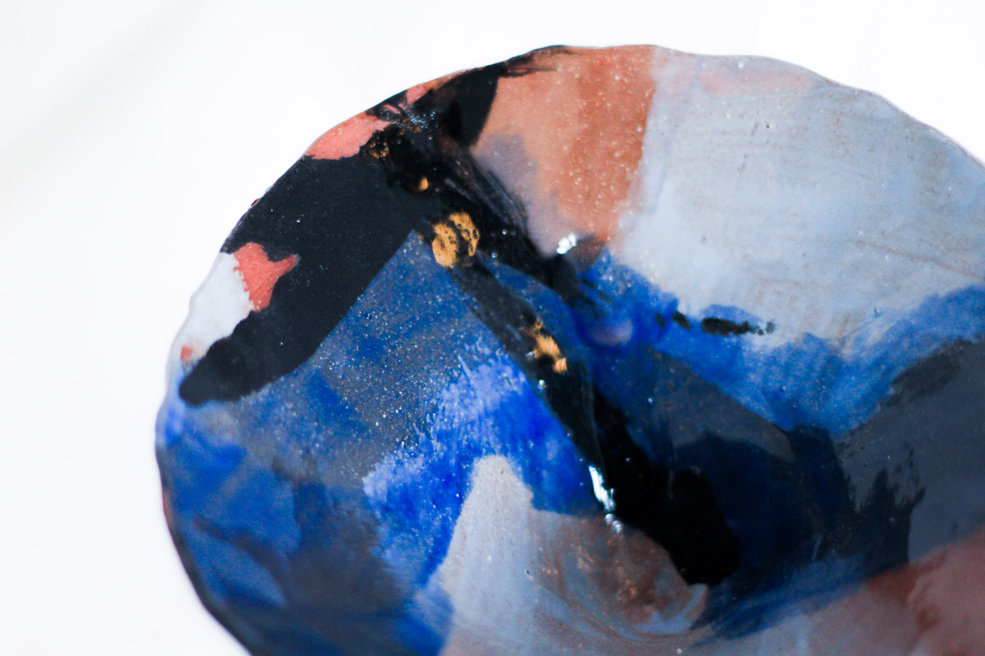 Projet (en cours) d'une création de céramiques inspirées de mes carnets de recherches picturales. Ma recherche est surtout axée autour d'une quête d'harmonie de couleurs juxtaposées et d'un jeu de texture soit par une recherche d'émaux soit par un travail en mono-cuisson sur terre crue. Année 2023 - 2024 (toutes les pièces ont été vendues)